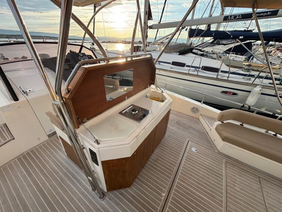 Deck: Factory Hard Top, Teak decking, Cockpit Wet-bar with Grill, Sun awning (Tenda).